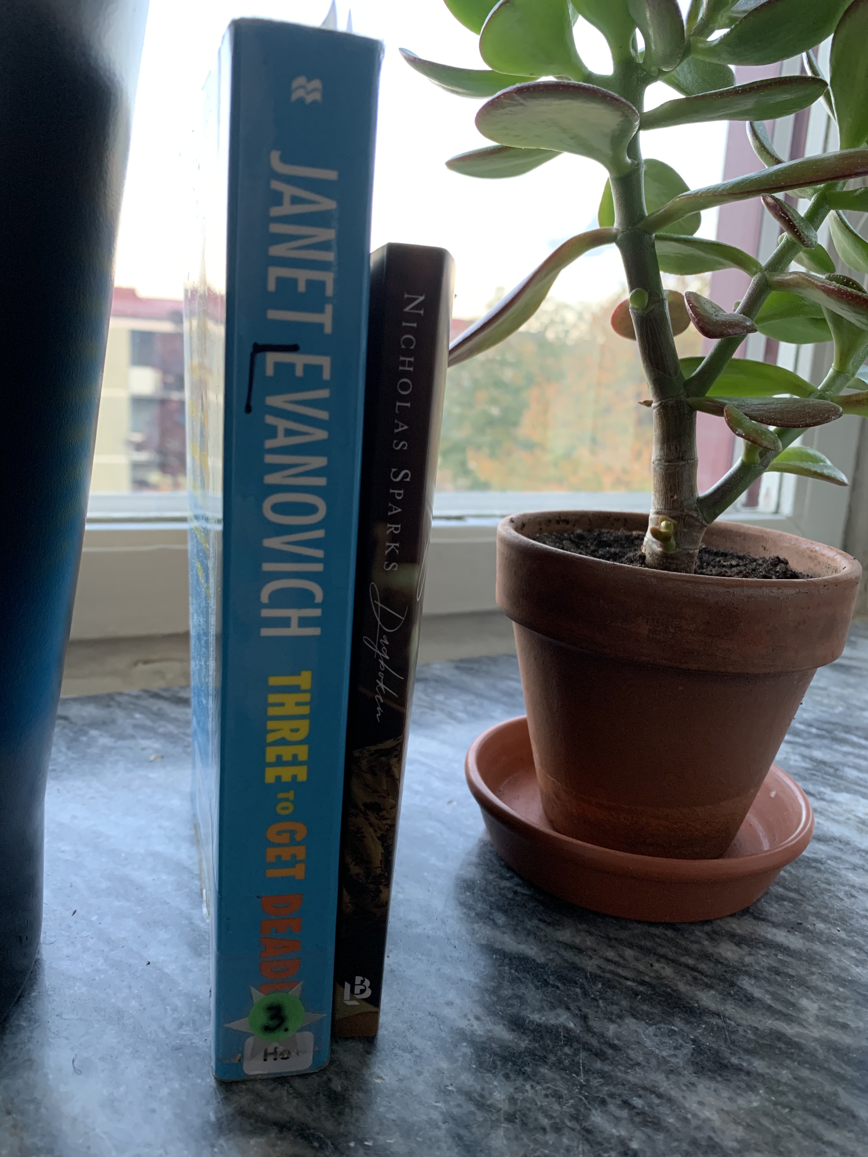 På vägen hem från jobbet i dag hämtade jag ut Three to Get Deadly av Janet Evanovich från biblioteket som jag hade reserverat. Jag tror att jag får vänta lite med att börja läsa den, min läser-just-nu-hög börjar vara ganska hög nu…