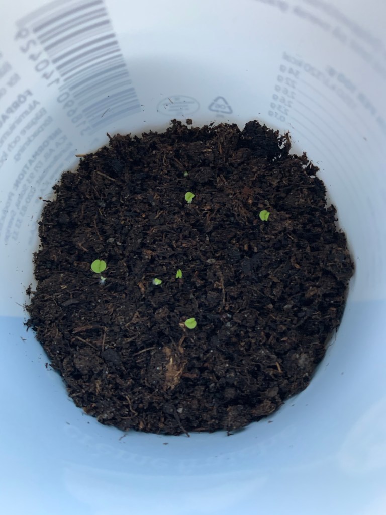 När jag inte läser tittar jag gärna till mina blommor. I morse när jag var och tittade till mina palettbladsfrön som jag sådde för en vecka sedan såg jag att de hade börjat kika fram. Det ska bli spännande att se vad det blir av dom!