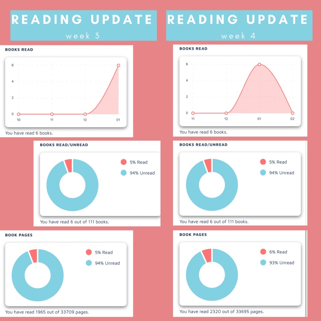 Januari är slut och jag hade tänkt att skriva ihop en sammanfattning av vad jag läste men vi får se när den kommer! Jag kan visa upp mina två senaste veckouppdateringar i alla fall.