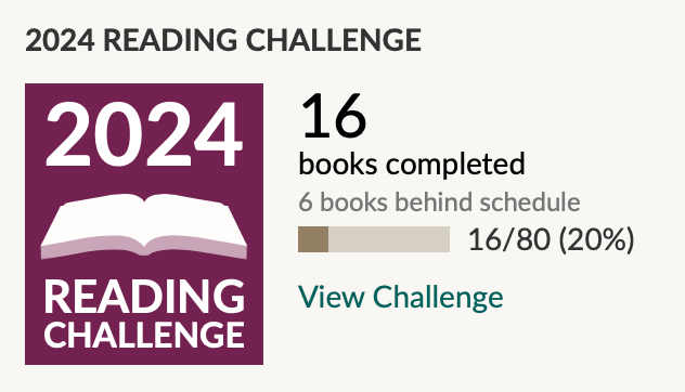 I am a bit behind in my Goodreads goal so far this year. It is one of the few book goals I set each year. But there is a lot left of this year so we will see how it goes. I have plans to read a bunch of my thinner books on my shelves and a few thicker ones and then there are those German ones.