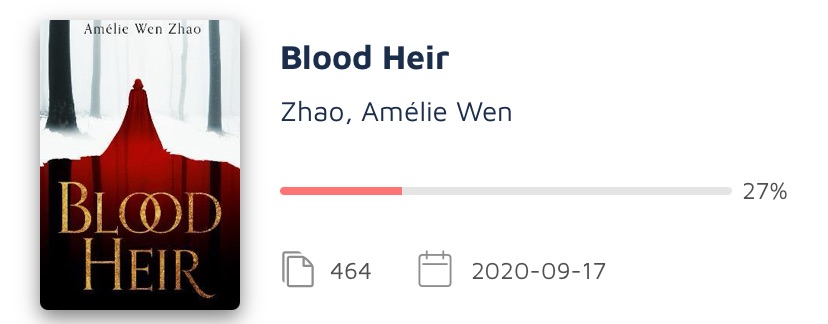 What am I currently reading? A couple of things. I currently have a bunch of books in a stack that I have started but mostly I am reading Blood Heir by Amélie Wen Zhao. There is magic and conmen and I hope this is a successful combo, so far so good.