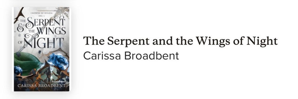The Serpent and the Wings of Night was chosen as my next read because I wanted a series where the next book was already out. The last couple of romantasy books I’ve chosen have been first books where it’s months away to be able to continue (and also where these series usually loose me) so I tried to be more intentional with my choice. It’s been a while since a read a vampire book (unless there was vampires in Quicksilver?) and it’s always interesting to see how an author chooses to portray the vampire world.