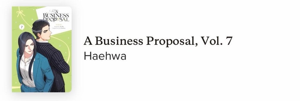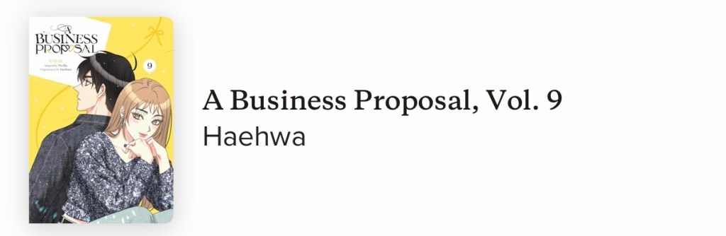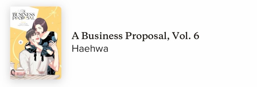 Volume number 6 of A Business Proposal was leaning a little towards feeling like a filler book. I did like it though. Ends on a bit of a cliffhanger as usual.